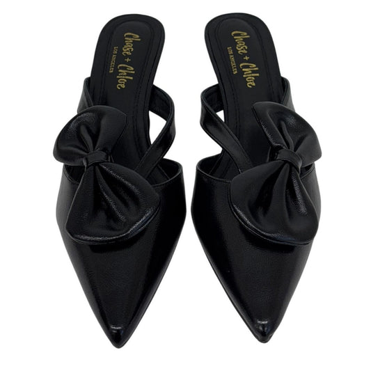 CHASE + CHLOE / Idra-3 / Womens Pointed Toe Kitten / Mules With Bow Black / Size 9