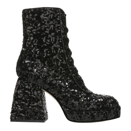 CIRCUS BY SAM EDELMAN / Kia Sequin / Black / Lace-Up & Zipper Closure / Chunky / Heel / Glamorous Design / Size 7