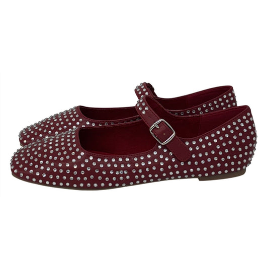 OLIVIA FERGUSON / Nancy / Flat / Mary Jane / With Diamonds encrusted Rhinestone-Studded / Faux Suede Upper / Red