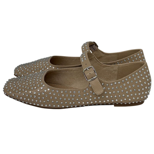 OLIVIA FERGUSON / Nancy / Flat / Mary Jane / Rhinestone-Studded / Faux Suede Upper / Camel / Nude