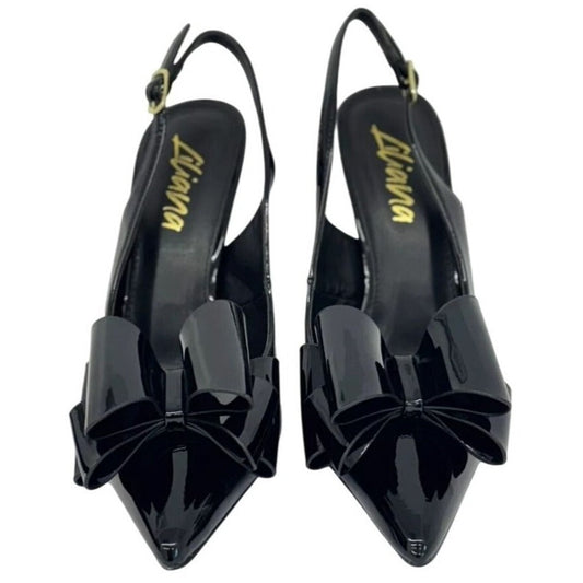 LILIANA / Lana -1 / Black / Patent / Slingback / Heels / With Bow Detail & Pointed Toe