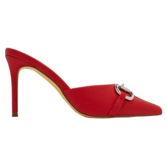 LILIANA / Silla-9 / Red / Pointed-Toe High / Heel Mules / With Silver Metal Bit Detail